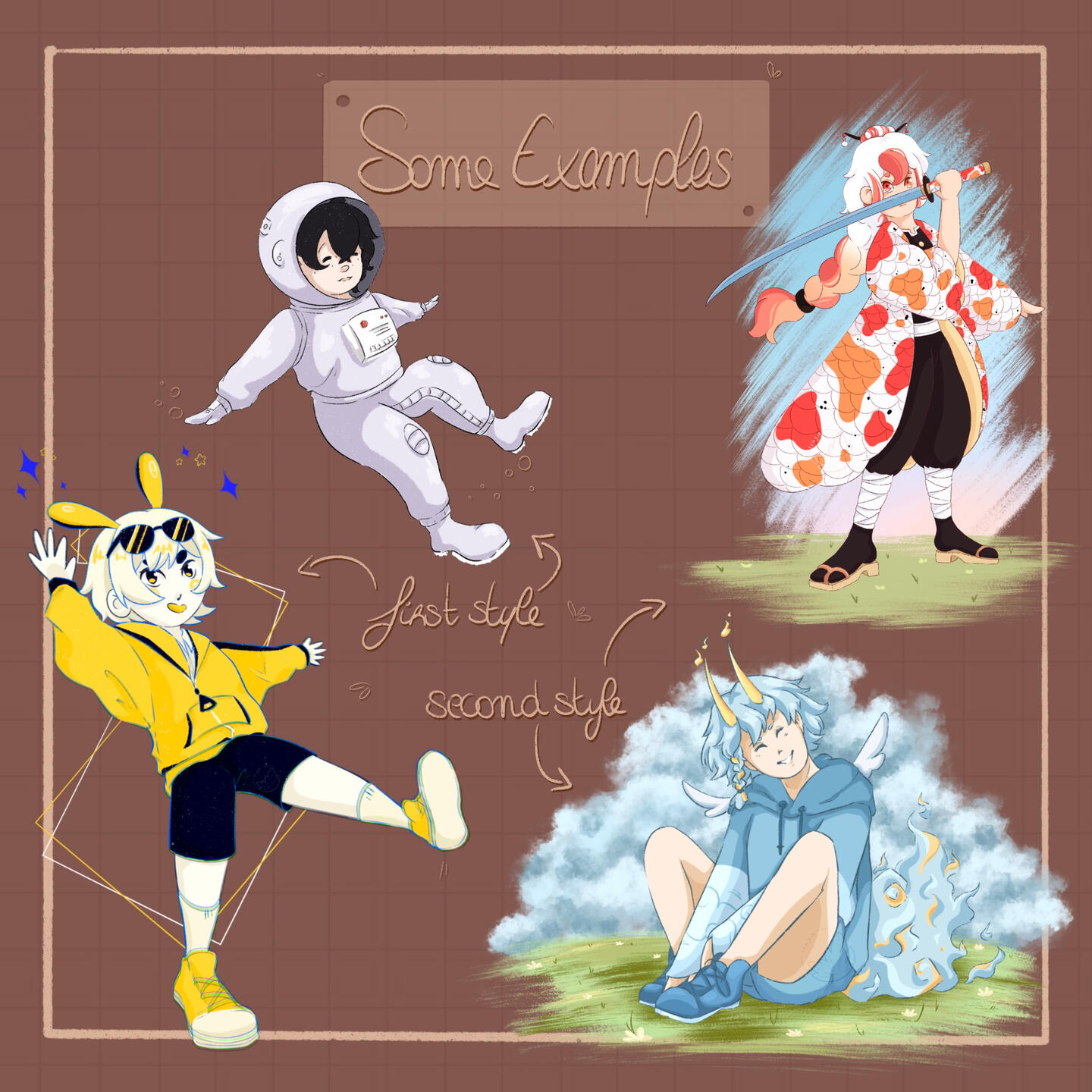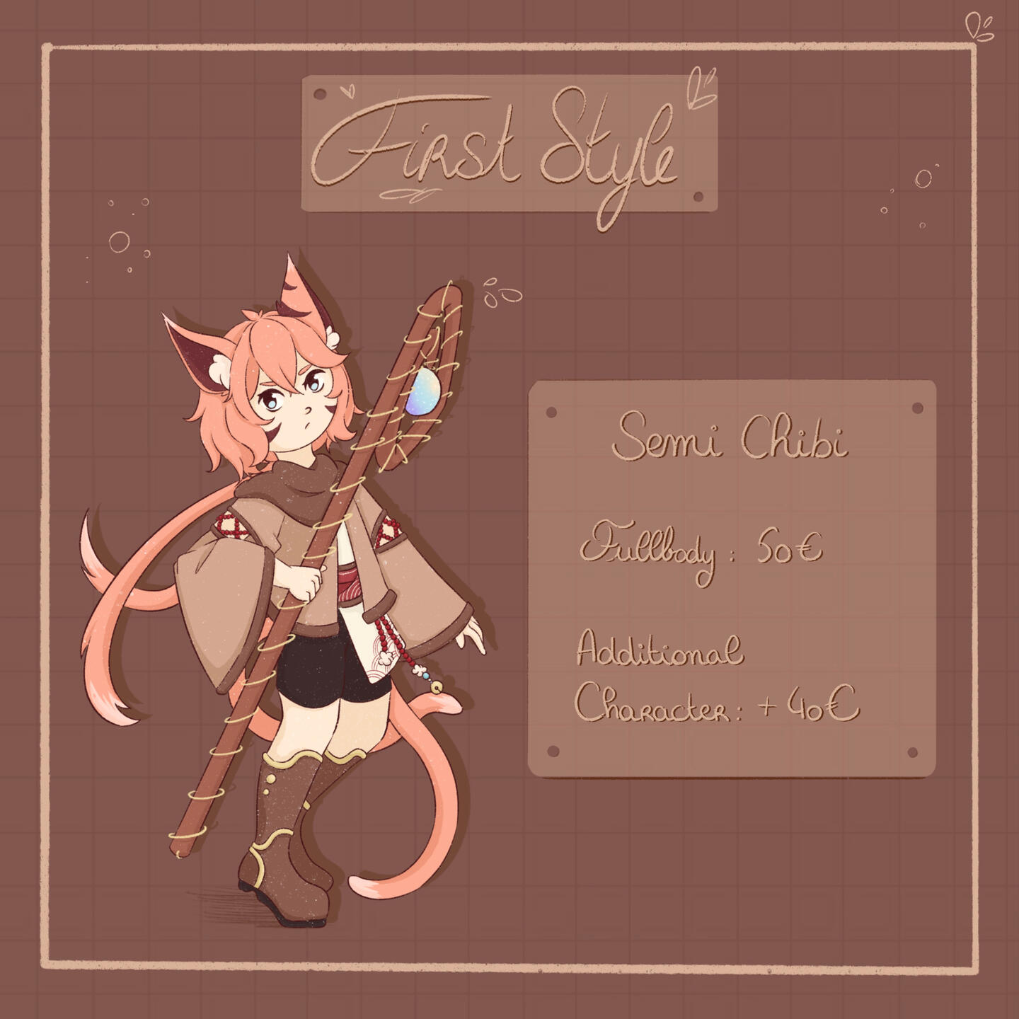 For more information:. If you have a specific request that isn't listed here, like a chara design sheet or graphism, please send me a private message on the network you want.